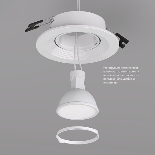 Светильники выполнены из современного термопластика.\nНизкая теплопроводность защищает потолок от нагревания. Идеальный вариант для натяжных и деревянных потолков.\nВыдерживают температуру до 120 градусов Цельсия.\nХарактерные особенности: прочность и полное отсутствие коррозии.\nЛегко моется водой.\nСветильник предназначен для использования со светодиодной лампой. \nУстановка ламп другого типа не допускается.\n\nГлубина встраиваемой части с лампой GU5.3 (патрон входит в комплект): 64 мм. Высота лампы 50 мм. \nГлубина встраиваемой части с лампой GU10 (патрон приобретается отдельно): 68 мм. Высота лампы 54 мм.\nГлубина встраиваемой части с модулем DK3000-5W, DK3000-7W dim, DK4000-5W или DK4000-7W dim: 40мм. Срок гарантии 3 года.
