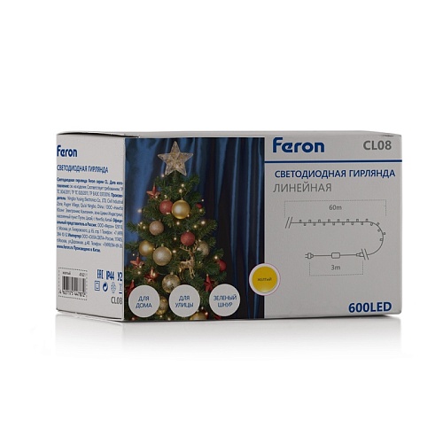 Характеристики Светодиодная гирлянда Feron CL08 линейная 60м +3м 230V синий c питанием от сети, зеленый шнур