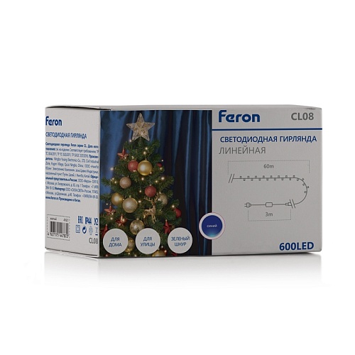 Характеристики Светодиодная гирлянда Feron CL08 линейная, статичная, 60м + 3м 230V желтый c питанием от сети, зеленый шнур