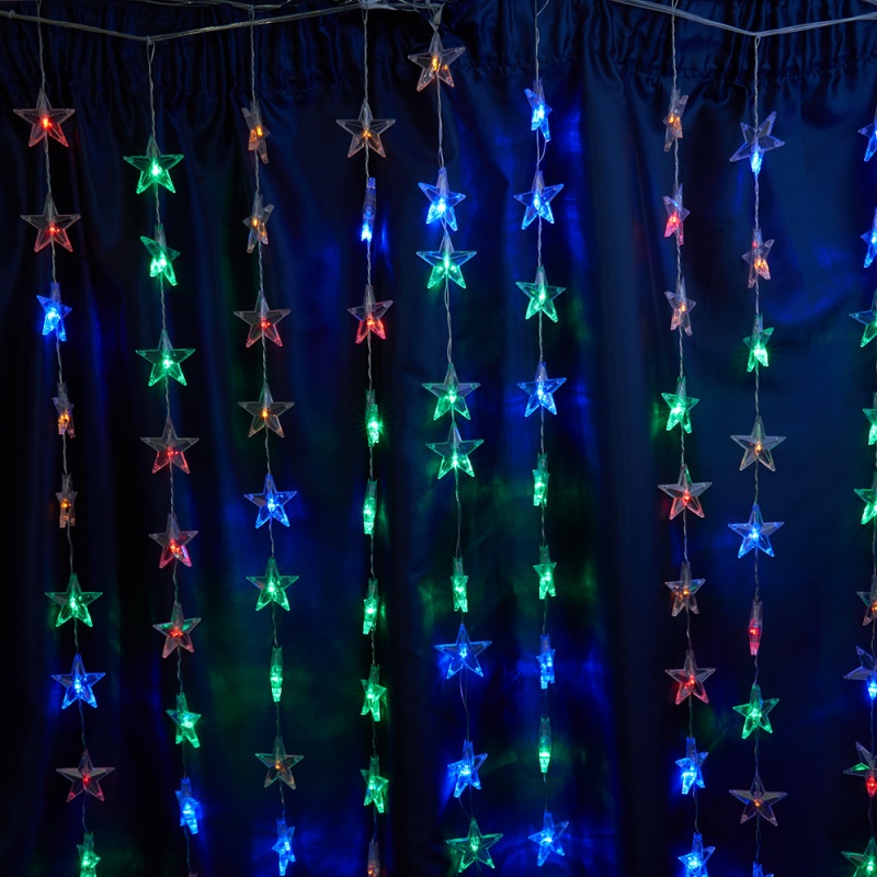Характеристики Светодиодная гирлянда Feron CL25 занавес Звездочки 2*1м + 3м мультиколор с контроллером, статичная, c питанием от сети 230V, прозрачный шнур