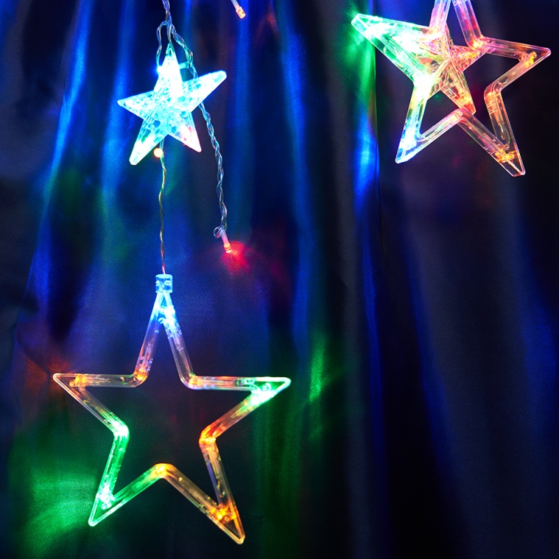 Характеристики Светодиодная гирлянда Feron CL29 бахрома Звезды 3м + 3м 230V мультиколор, статичная, c питанием от сети, прозрачный шнур