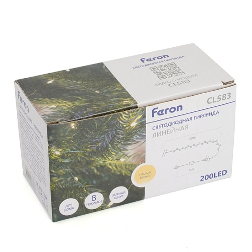 Характеристики Светодиодная гирлянда Feron CL583 линейная Роса (на проволоке) 2700К c питанием от сети 220V 20м + сетевой шнур 1,5м
