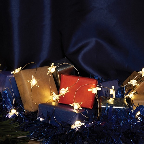 Отзывы о Светодиодная гирлянда Feron CL589 линейная Звездочки на проволоке, 2700К, с питанием от батареек, прозрачный шнур 2.3м