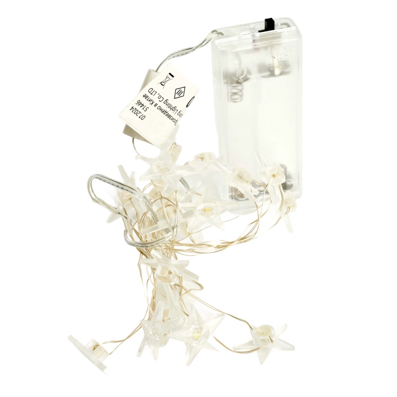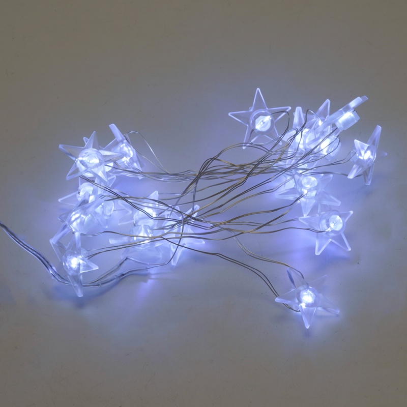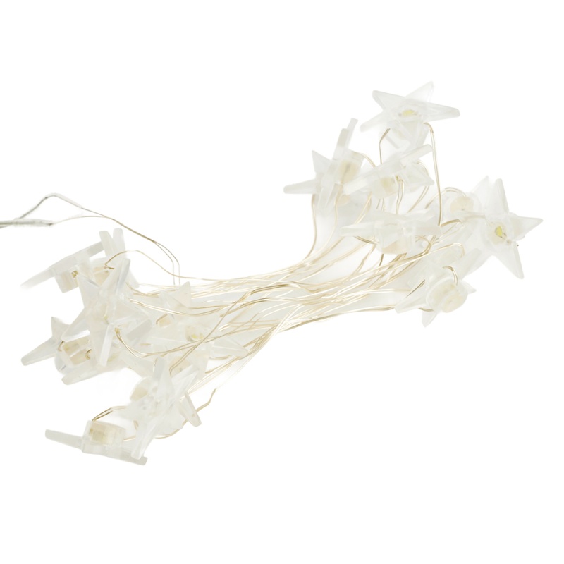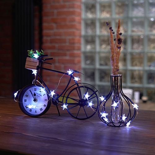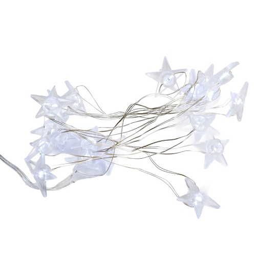 Светодиодная гирлянда Feron CL589 линейная Звездочки на проволоке, 5000К, с питанием от батареек, прозрачный шнур 2.3м 51446