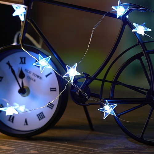 Отзывы о Светодиодная гирлянда Feron CL589 линейная Звездочки на проволоке, 5000К, с питанием от батареек, прозрачный шнур 2.3м
