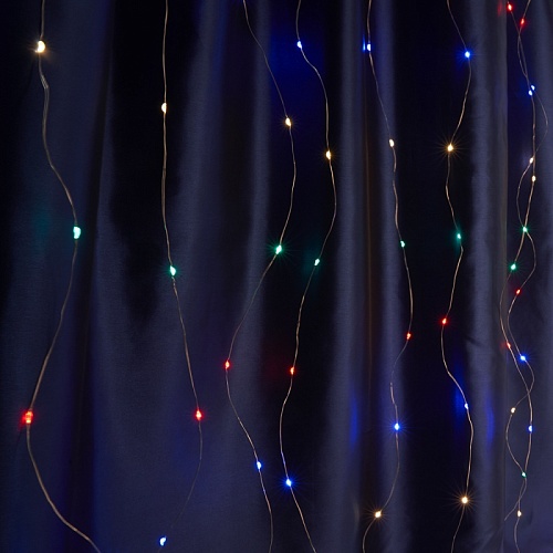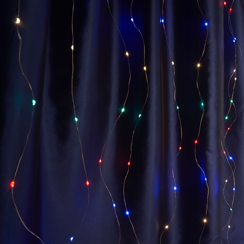 Характеристики Светодиодная гирлянда Feron CL590 занавес типа Роса 2*2м + 2м мультиколор USB, прозрачный шнур