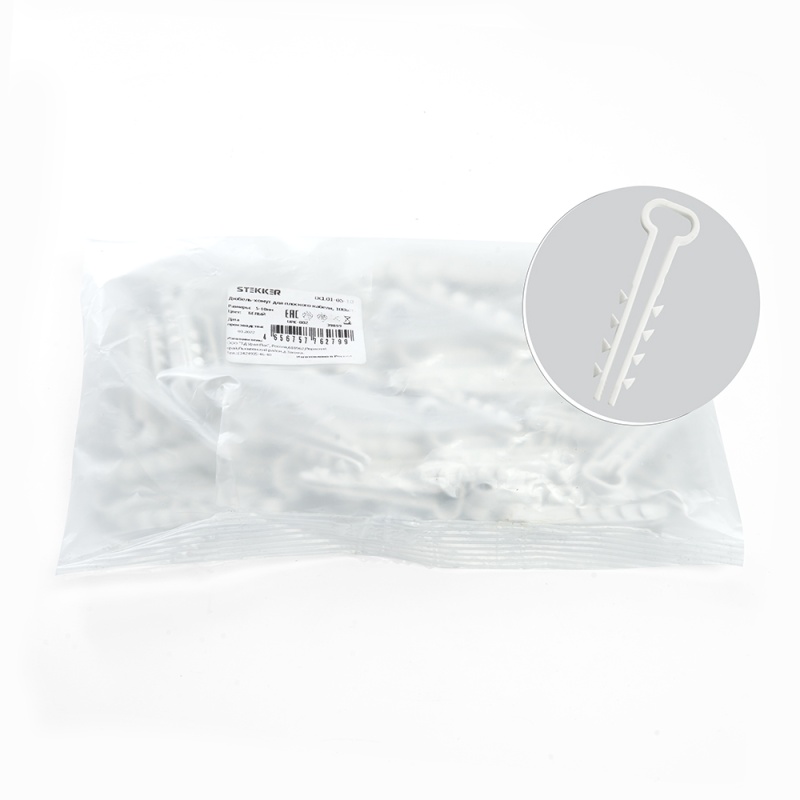 Отзывы о Дюбель-хомут для плоского кабеля (5-10мм), STEKKER DCL01-05-10, полипропилен, белый (100шт.)