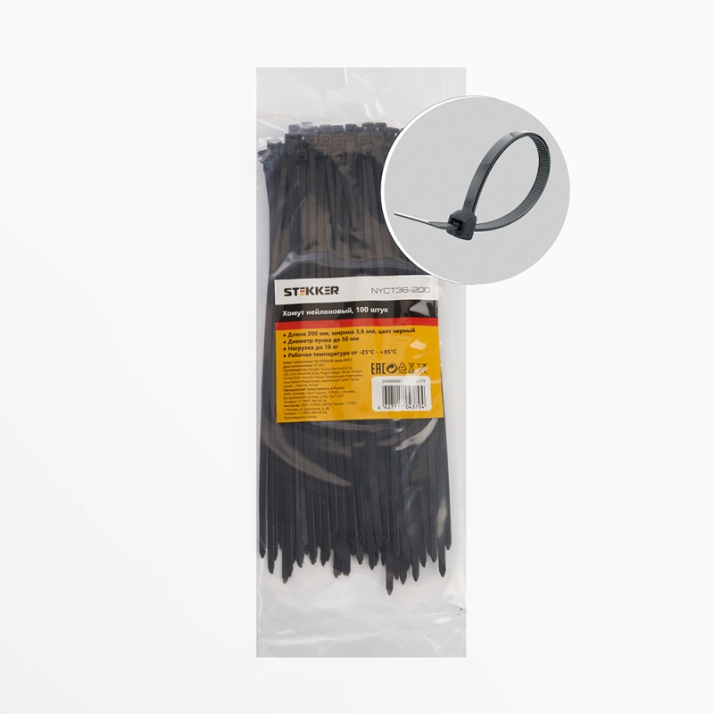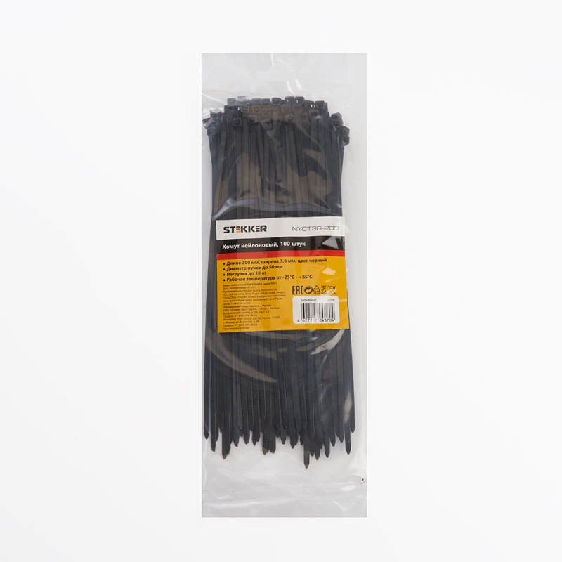 Отзывы о Хомут нейлоновый STEKKER NYCT36-200 3,6x200 мм, d пучка max 50 мм, нагрузка 18 кг, белый, упаковка 100 шт