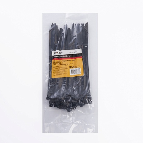 Хомут нейлоновый STEKKER NYCT47-200 4,7х20 мм, d пучка max 50 мм, нагрузка 22кг, черный, упаковка 100 шт