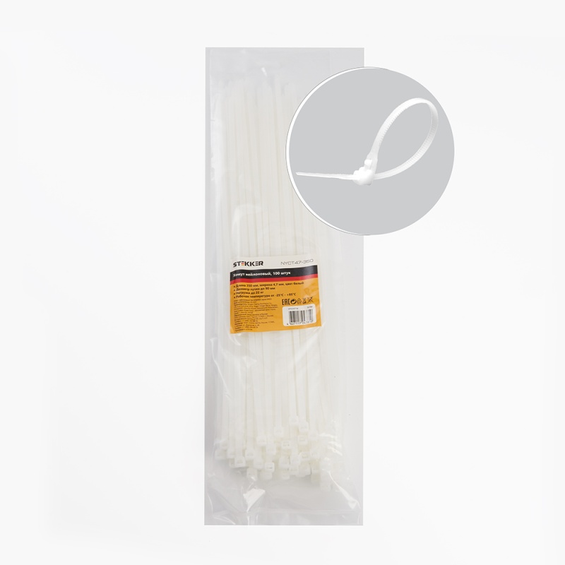 Отзывы о Хомут нейлоновый STEKKER NYCT47-350 4,7х350 мм, d пучка max 90 мм, нагрузка 22кг, белый, упаковка 100 шт