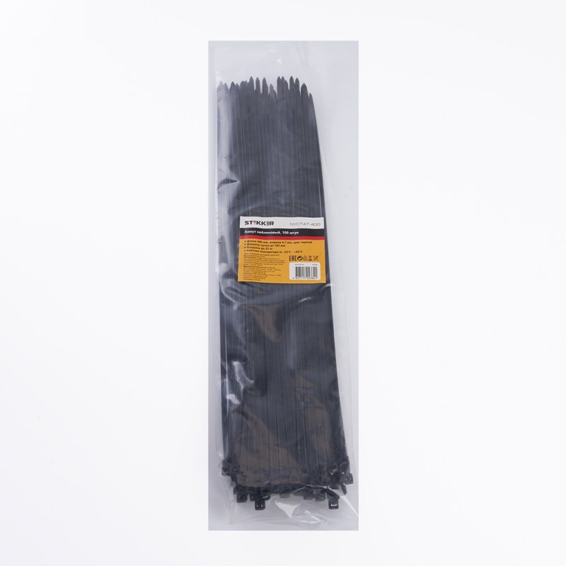 Отзывы о Хомут нейлоновый STEKKER NYCT47-400 4,7х400 мм, d пучка max 105 мм, нагрузка 22кг, черный, упаковка 100 шт