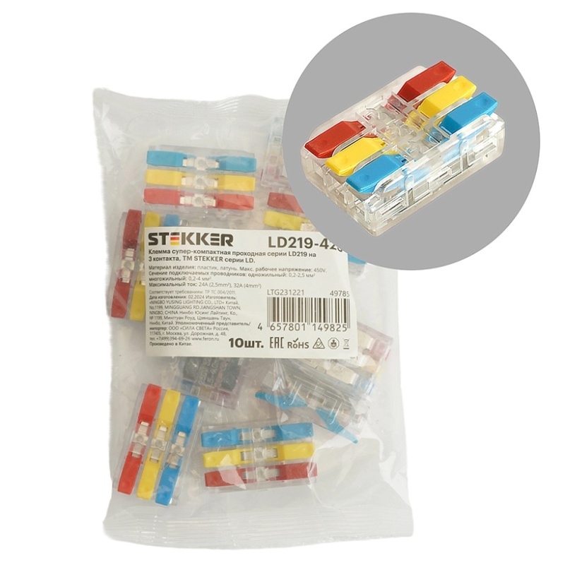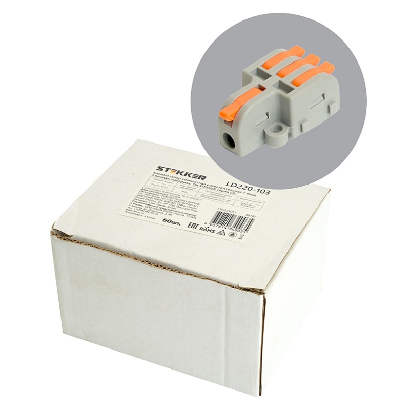 Отзывы о Клемма супер-компактная разветвительная 1 вход, 3 выхода, наборная STEKKER,LD220-103