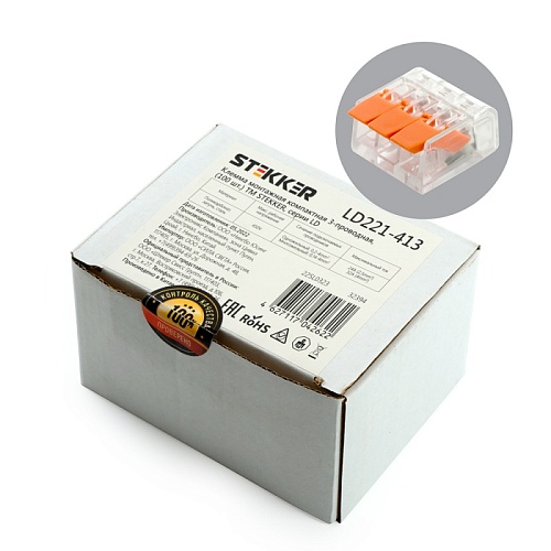 Универсальная компактная клемма 3-проводная STEKKER, LD221-413 32394