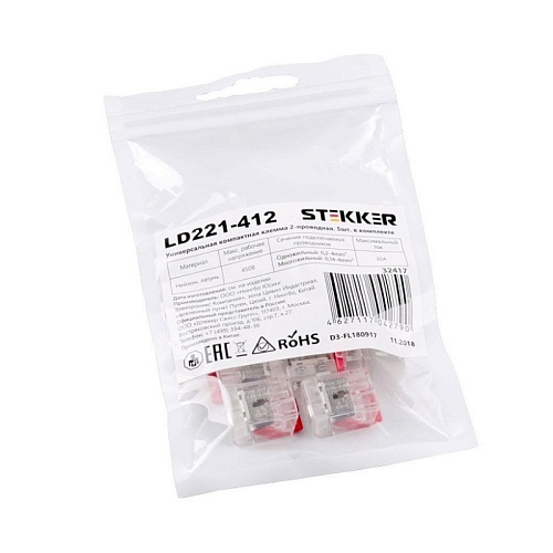 Характеристики Универсальная компактная клемма 3-проводная STEKKER, LD221-413 (5 штук в упаковке)