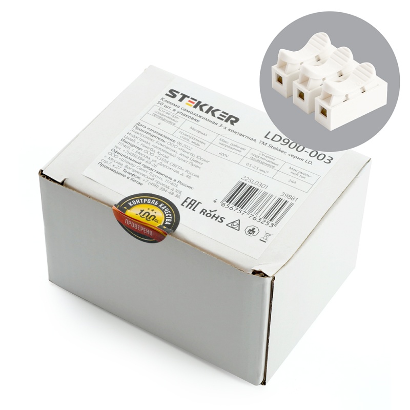 Клемма самозажимная 3-х контактная STEKKER, LD900-003 39881