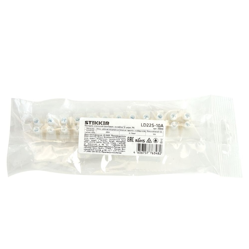 Характеристики Колодка клеммная винтовая STEKKER, линейка 12 штук, полиамид, LD225-10 DIY