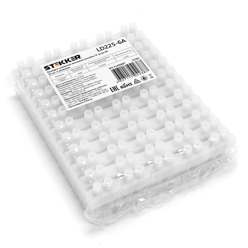 Колодка клеммная винтовая STEKKER, линейка 12 штук, полиамид, LD225-6A 32382