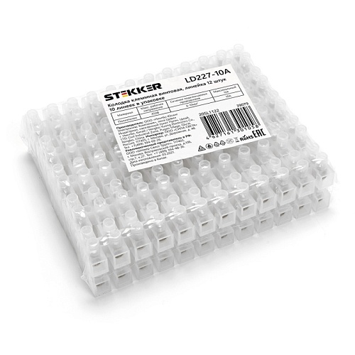 Колодка клеммная винтовая STEKKER, линейка 12 штук, полиэтилен, LD227-10A 39079