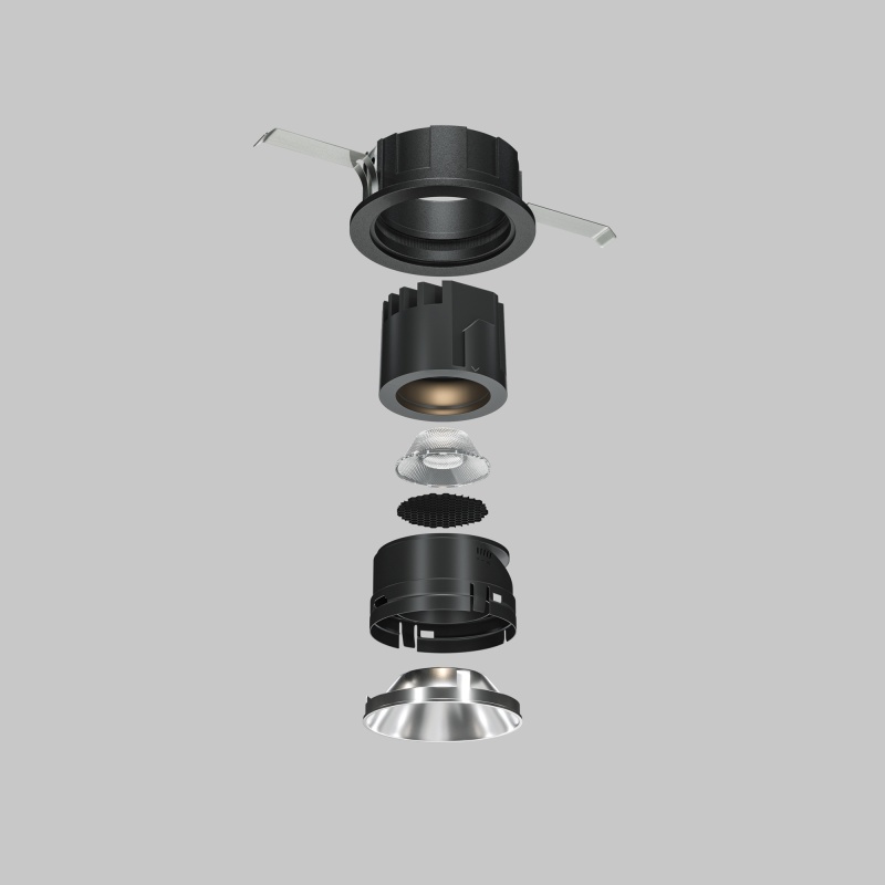 Встроенный утопленный источник света LED, обеспечивает мягкое рассеивание света. Поворотный механизм, позволит организовать акцентную подсветку зон и предметов интерьера. Сменные линзы и фильтры позволят изменить стандартный угол 36° на выбор от 15°-50° и сделать освещение более комфортным. Сменные рефлекторы в ассортименте, позволят подобрать цветовую гамму для большинства трендовых интерьеров.