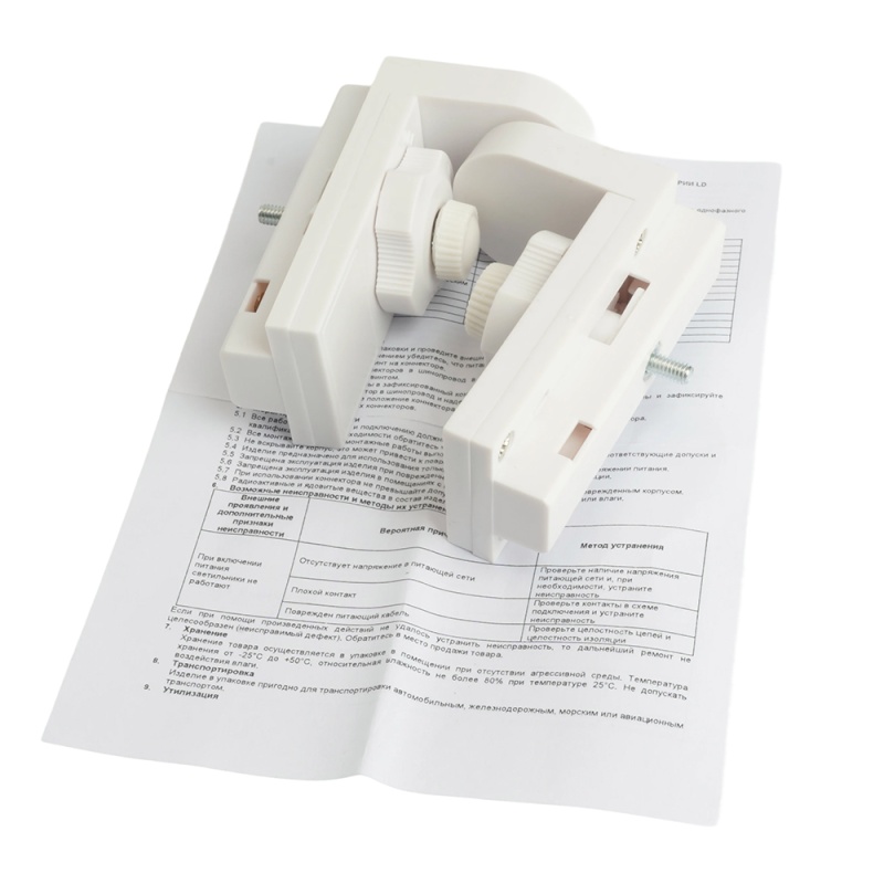Характеристики Коннектор (адаптер для установки Т8 лампы цоколь G13) для шинопровода, белый LD1016