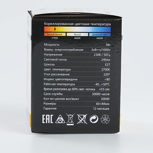 Характеристики Лампа светодиодная Feron LB-371 Шар E27 3W 230V 2700K матовый