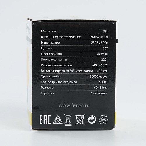 Отзывы о Лампа светодиодная Feron LB-371 Шар E27 3W 230V желтый