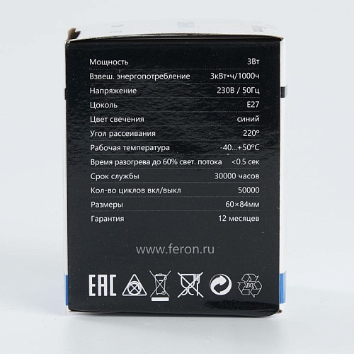 Отзывы о Лампа светодиодная Feron LB-371 Шар E27 3W 230V синий