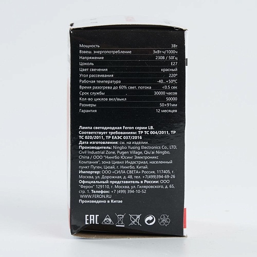 Отзывы о Лампа светодиодная Feron LB-375 E27 3W 230V красный