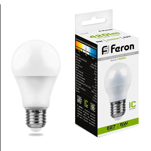 Характеристики Лампа светодиодная Feron LB-38 Шарик E27 5W 175-265V 4000K