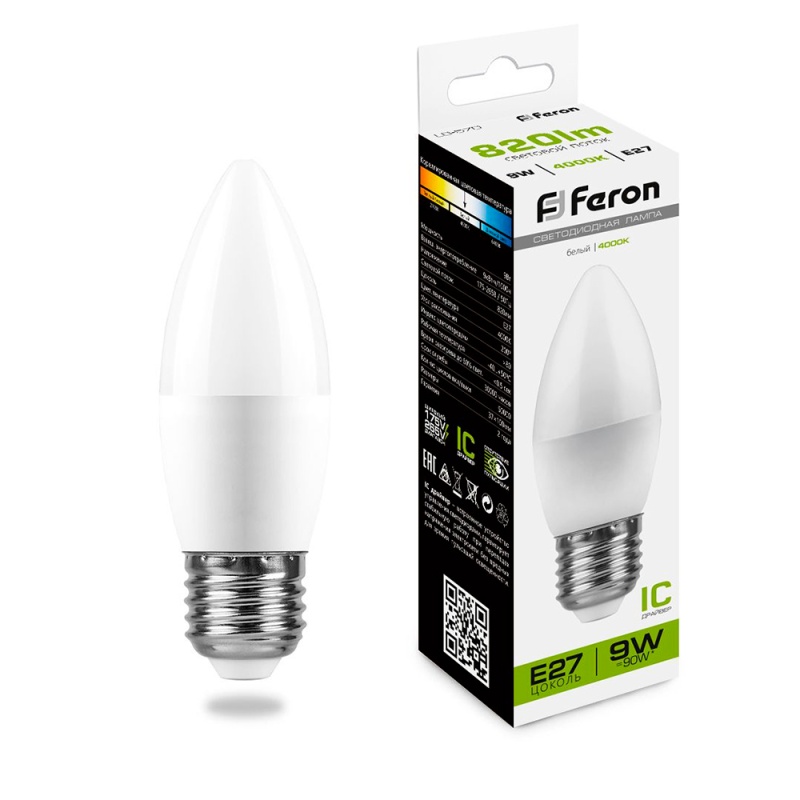 Характеристики Лампа светодиодная Feron LB-570 Свеча E27 9W 175-265V 4000K