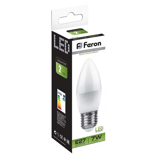 Характеристики Лампа светодиодная Feron LB-97 Свеча E27 7W 175-265V 4000K