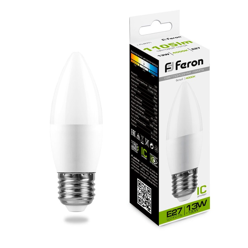Отзывы о Лампа светодиодная Feron LB-970 Свеча E27 13W 175-265V 4000K