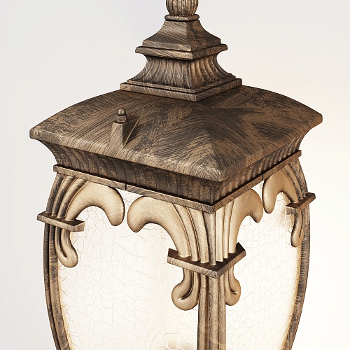 Серия представлена настенными, подвесными и напольными уличными светильниками для ламп Е27. Корпус моделей выполнен из алюминия и окрашен в два оттенка на выбор: черный с золотом или античная бронза. Светильник защищен от коррозии и перепадов температур. Декоративная технология обработки стекла PULEGOSO создает эффект пузырьков воздуха внутри плафона.
