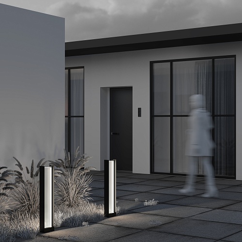Материал корпуса - алюминий, цвет - графит. Рассеиватель из прочного матового стекла. LED-источник света, цветовая температура - 3000К. Степень защиты - IP65. Подходят для основного освещения.