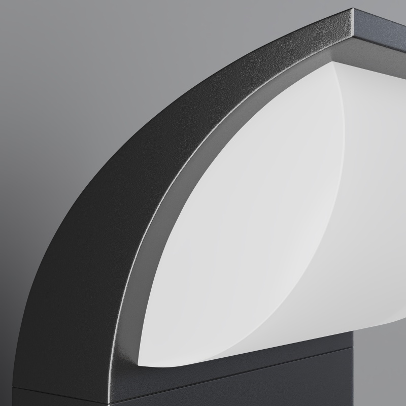 Материал корпуса - алюминий, цвет - графит. Белый матовый рассеиватель. LED-источник света. Цветовая температура 3000К. Наличие встроенного датчика движения у настенной модели. Степень защииты IP65 и IP44 настенной модели с датчиком движения.