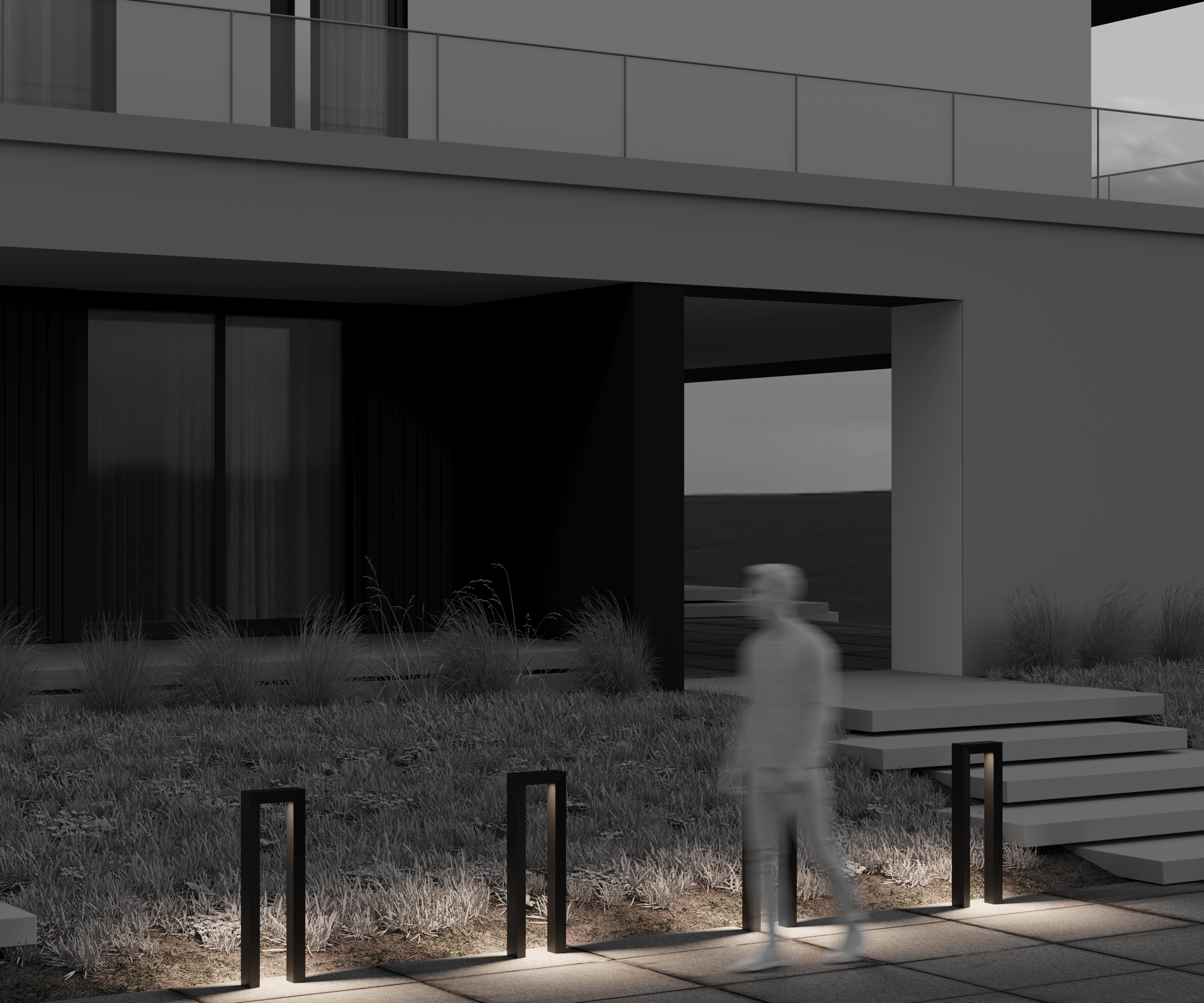 Для освещения дорожек лучше использовать низкие светодиодные столбики или встроенные светильники с направленным светом.