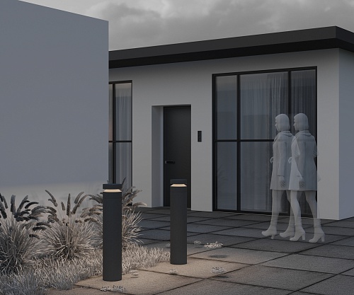 Материал арматуры — основание из алюминия, основная часть из цемента. Цвет — серый. Два вида корпуса — прямоугольный и цилиндр. Защита — IP65. LED-источник света. Цветовая температура 3000К. Высокий индекс цветопередачи CRI 90 — естественная цветопередача.