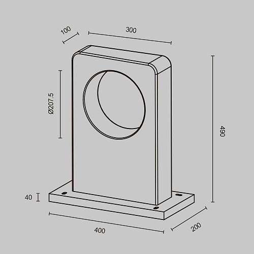 Материал арматуры — основание из алюминия, основная часть из цемента. Цвет — серый. Два вида корпуса — прямоугольный и цилиндр. Защита — IP65. LED-источник света. Цветовая температура 3000К. Высокий индекс цветопередачи CRI 90 — естественная цветопередача.