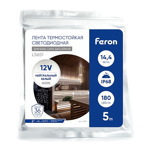 Отзывы о Светодиодная неоновая лента Feron LS651, 180SMD(2835)/m 14,4W/m 12V 5m IP68 ,4000К с 2 заглушками, 2 заглушками c проводом, 10 креплениями в комплекте