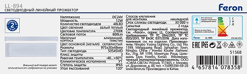 LL-894 Светодиодный линейный прожектор Световая линия, 2700K, 975*30*45mm, 12W, DC24V, IP65 51568