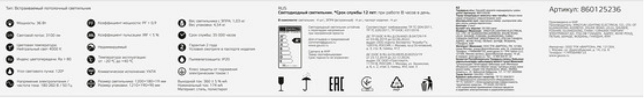 Характеристики Линейный светильник GAUSS 860125236_GAUSS