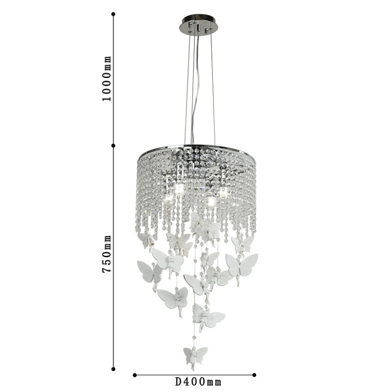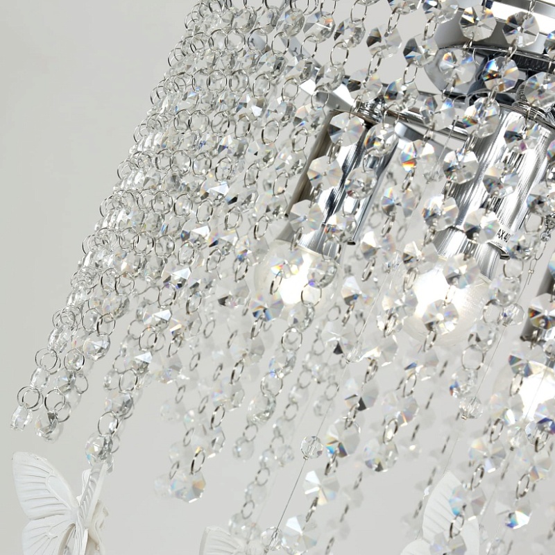 каркас цвета хром, прозрачный хрусталь высшего качества, гипсовый декор