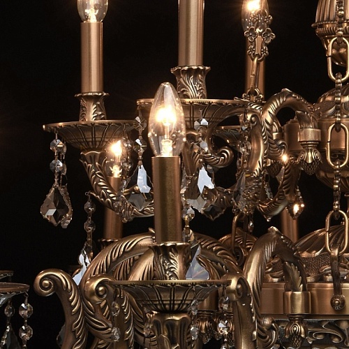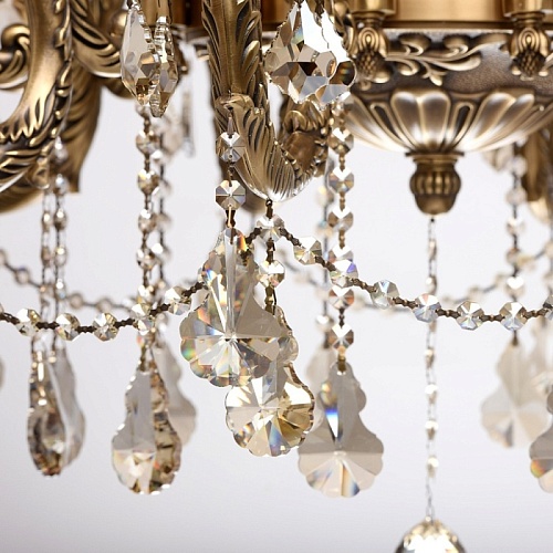 В светильниках Chiaro используются латунь, бронза, фарфор, керамика, хрусталь (K9). Поталь из золота и серебра придает дополнительный шарм.