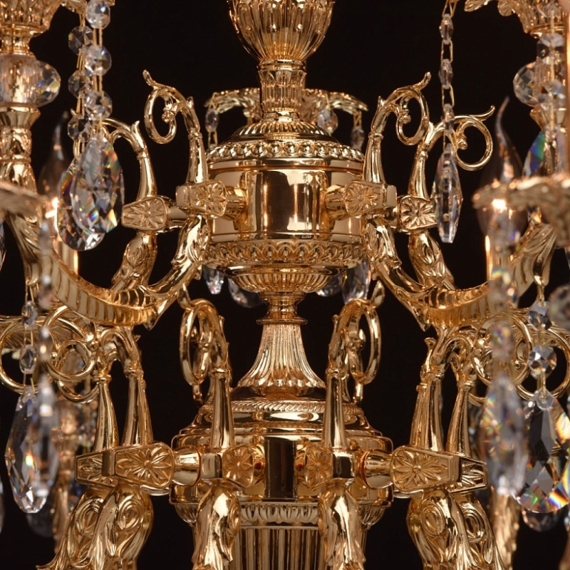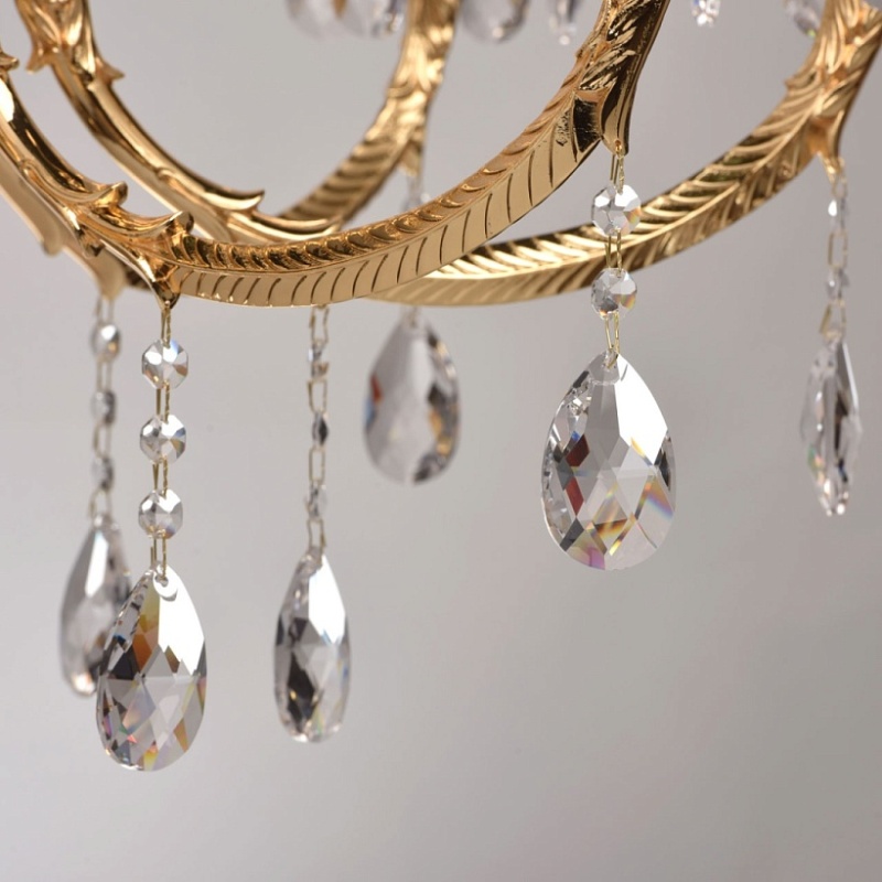В светильниках Chiaro используются латунь, бронза, фарфор, керамика, хрусталь (K9). Поталь из золота и серебра придает дополнительный шарм.