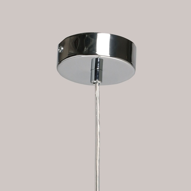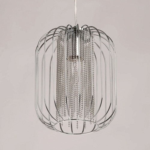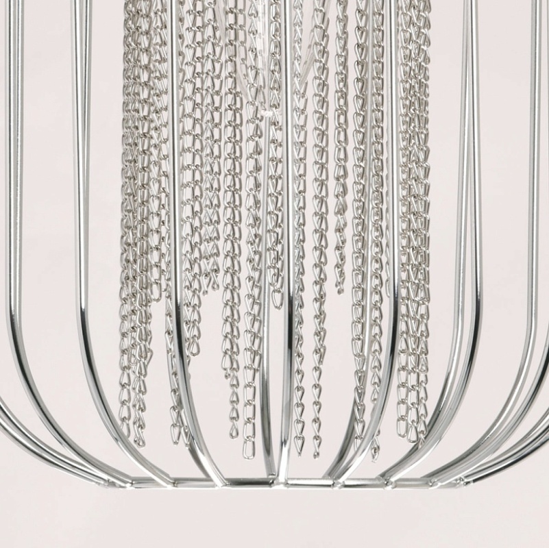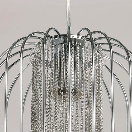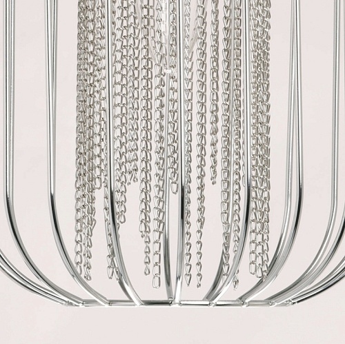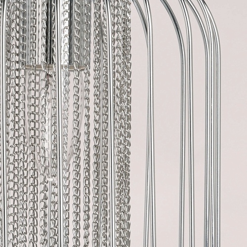 Металлическое основание подвеса гальванизировано в цвет хрома. Подвес декорирован цепочками, гальванизированными в цвет основания.