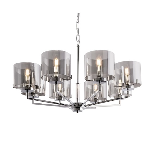 Хромированная металлическая арматура. Плафоны выполнены из дымчатого стекла. Гальваническое напыление создает зеркальный эффект. Плафоны крепятся на скобы, что облегчает эксплуатацию. Источник света – лампа с цоколем E14.