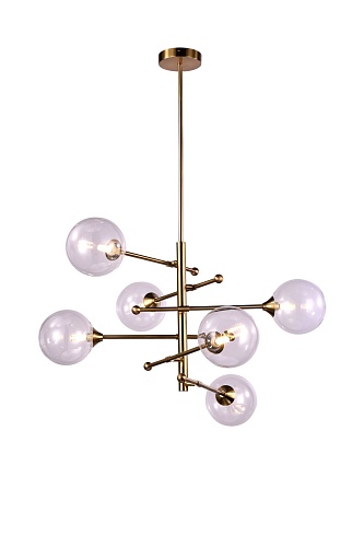 Материал арматуры – металл. Цвет – золотая бронза. Плафоны сферической формы. Материал – прозрачное дутое стекло. Регулируемое крепление плафонов позволяет менять дизайн и направление светового потока. Источник света – лампа G9.