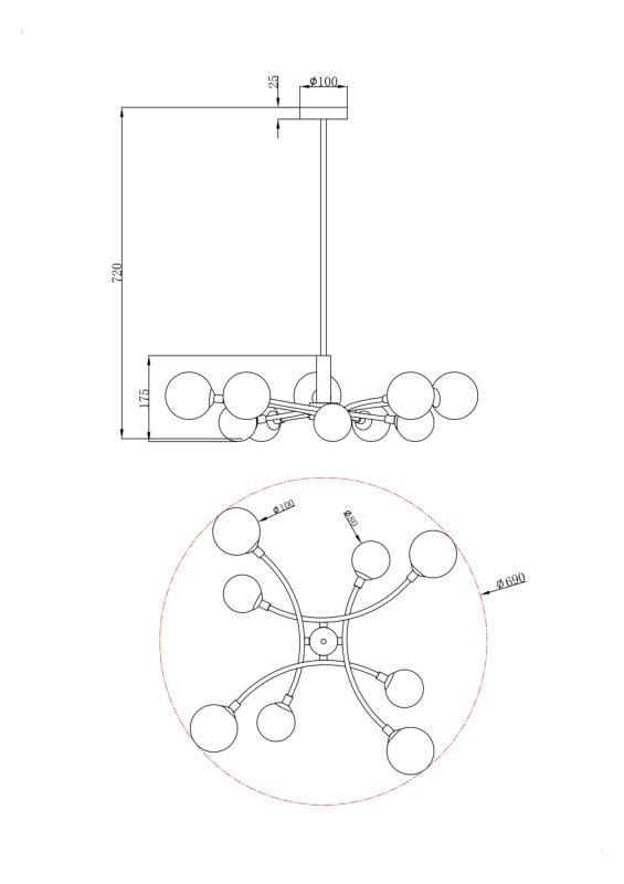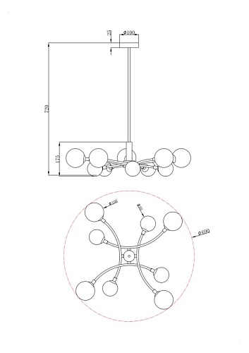 • Диаметр потолочной чаши (мм)