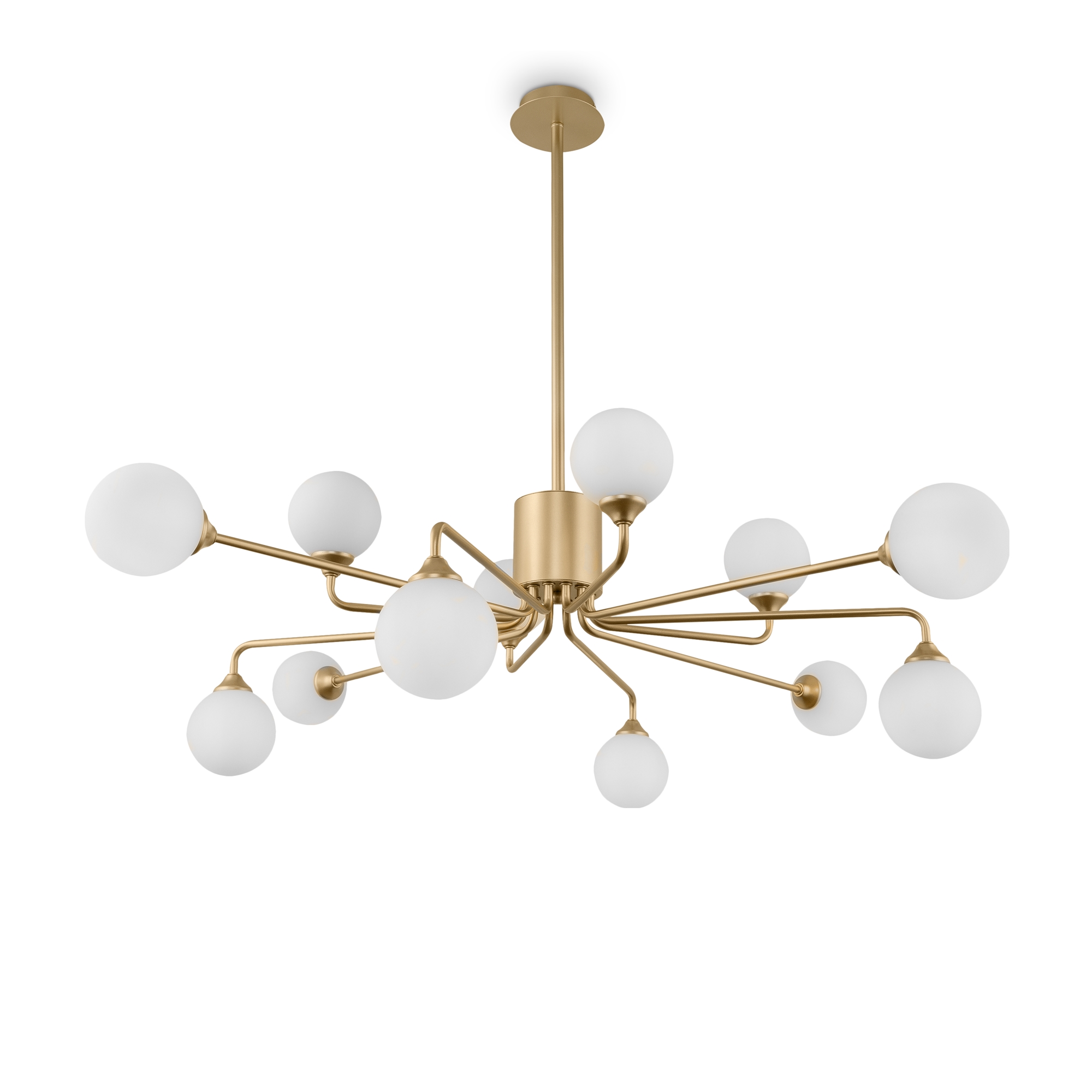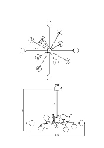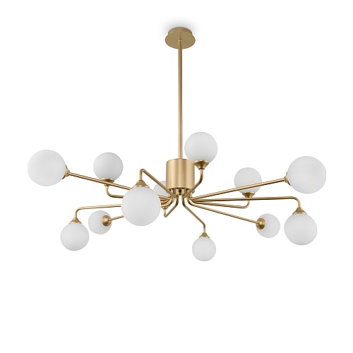 Оригинальная композиция, объединяющая стеклянные плафоны-сферы и металлическую арматуру цвета латуни, актуальна для освещения современных интерьеров Благодаря большому ассортименту серии и наличию в ней люстр различного диаметра и высоты, каждый сможет выбрать светильник необходимых размеров. Разнообразие конструктивных решений также не оставляет равнодушным: ассиметричные светильники и модели с дугообразными рожками-лучами займут достойное место в любой обстановке. Люстры на 12, 9 и 6 плафонов позволяют подобрать оптимальную яркость и мощность подсветки, исходя из размеров помещения.