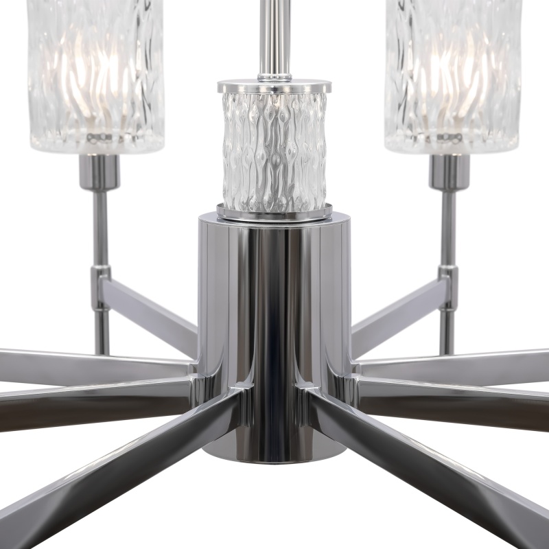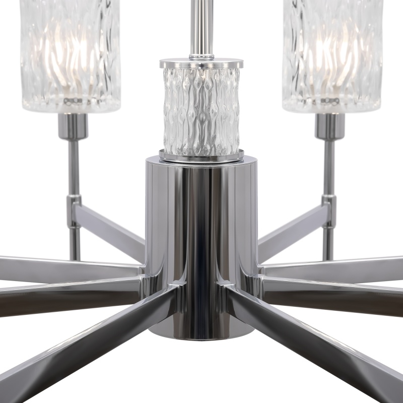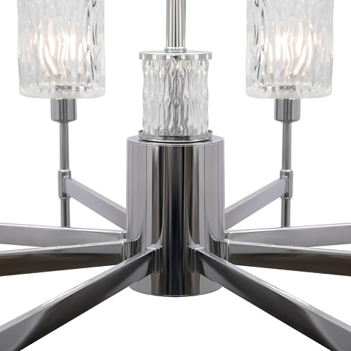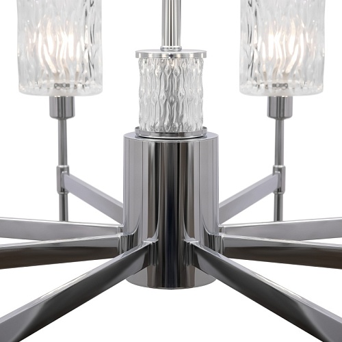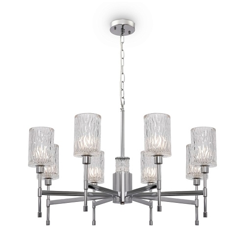 Хромированная металлическая арматура. Плафоны – фактурное прозрачное стекло. В качестве источника света используется лампа с цоколем Е14.